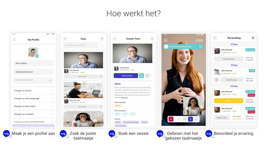 Taaly is een 1-op-1 oefenplatform dat nieuwe Nederlanders verbindt met locals, door de Nederlandse taal te oefenen met videobellen om uiteindelijk met iedereen te kunnen communiceren en je plek in de samenleving te vinden.